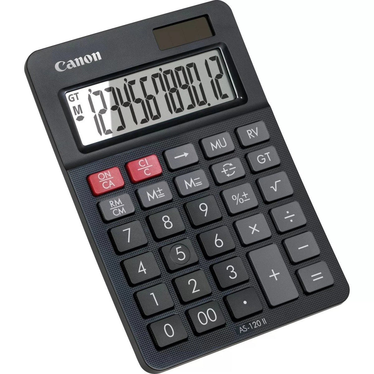 Kalkulator Canon AS-120 II je kompaktni in praktičen 12-mestni namizni kalkulator z navpično nagnjenim zaslonom, ki je idealen za pisarniško uporabo. Ponuja funkcije marže, storniranja in skupnega seštevka, ki olajšajo izvajanje zapletenih izračunov. Ta kalkulator je tudi okolju prijazen – nekateri njegovi deli so izdelani iz recikliranih materialov podjetja Canon.