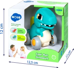 Vztrajnostni frikcijski pogon omogoča, da se dinozaver po nežnem potisku samostojno pelje. Odlično za aktivno igro in prve dirke po preprogi ali tleh.
