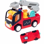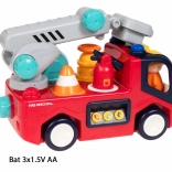 Po pritisku na gumbe avto vklopi utripajoče luči in realistične zvoke sirene, ki otroke potegnejo v vlogo gasilcev.