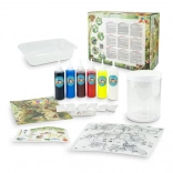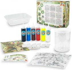 Končane hrošče lahko shranite v akvarij z vodnimi kristali, ki jih prav tako najdete v kompletu. Akvarij lahko zlahka okrasite s priloženimi nalepkami. Izobraževalni plakat vas seznani z zanimivimi dejstvi o žuželkah.