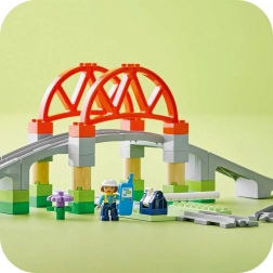 Komplet Lego DUPLO Železniški most in tirnice otrokom nudi razširitev njihovih interaktivnih železniških kompletov. Ta ustvarjalna igrača omogoča dodati dvižni most in podaljšati progo z osmimi ravnimi tirnicami, ki jih je mogoče povezati s katerim koli železniškim setom LEGO DUPLO. Otroci od dveh let se lahko igrajo strojevodjo, kar spodbuja razvoj koordinacije vida in rok.