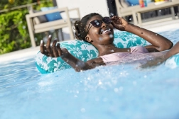 Osrednji del iz trpežne mrežice telo pusti delno potopljeno, zato ostanete prijetno osveženi tudi v vročih dneh.
