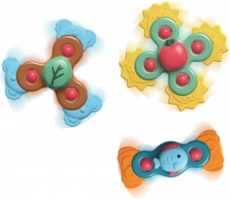 Iščete grizalo, ki bo otroke zabavalo in jim hkrati olajšalo rast zobkov? Ta grizala z močnim priseskom se preprosto pritrdijo na mizo, jedilni stolček ali banjico, njihova vrtljiva zasnova pa deluje kot senzorični spinnerji. Spodbujajo prijemanje, razvijajo fino motoriko in pomirjajo dlesni.