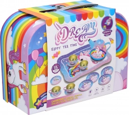 Stajliš čajni set z motivom samoroga prinese veselje v vsako otroško igro doma. Zaradi robustne kovinske izvedbe prenese tudi navdušeno vsakodnevno postrežbo. Pisani kovček z ročajem omogoča enostavno prenašanje in shranjevanje vseh delov na enem mestu.
