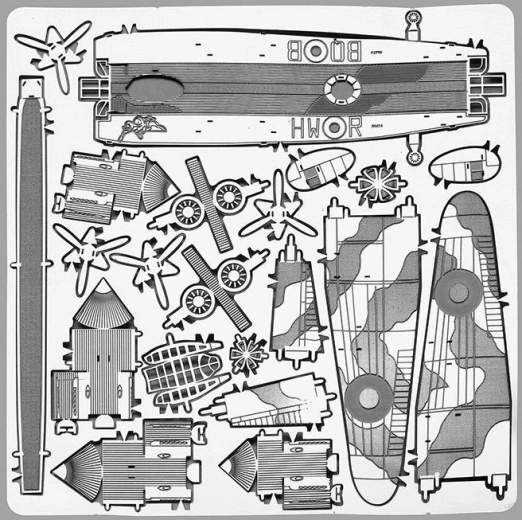 Zvesta silhueta legendarnega štirimotornega letala RAF z realističnimi detajli oborožitve, podvozja in kril za prepričljiv končni model.