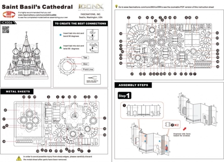 METAL EARTH ICONX prinaša dovršeno 3D kovinsko konstrukcijsko maketo katedrale sv. Bazilija – ikoničnega simbola Moskve. Iz tankih jeklenih ploščic boste s pomočjo zatičev in pregibov ustvarili miniaturno repliko z osupljivimi detajli, ki bo izstopala doma, v pisarni ali v šoli.