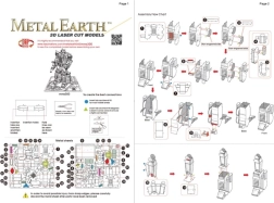 Komplet vsebuje 2 jekleni ploščici (21 × 11 cm) in podrobna ilustrirana navodila. Posamezne dele iztisnete iz ploščic in jih s pomočjo upognjenih jezičkov povežete v zatiče – torej brez lepila. Za udobnejše delo priporočamo majhne klešče/ščipalke in fine ploske klešče (niso priložene). Sestavljen model meri približno 9 × 4,5 × 3 cm in je primeren od 14 let dalje.