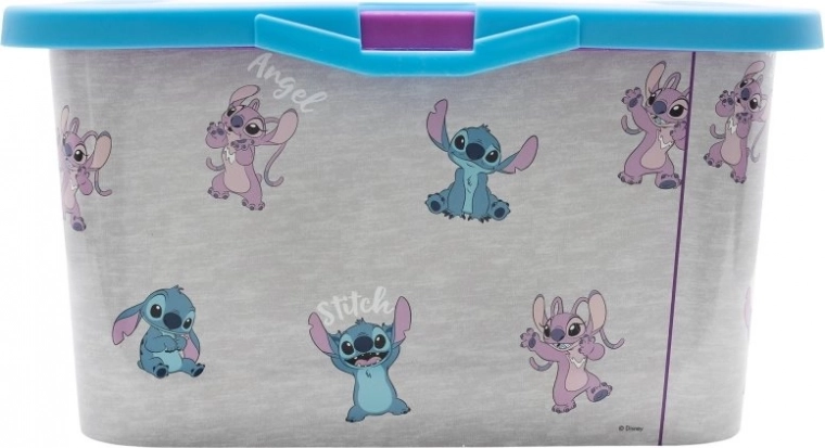 Otroška shramba je okrašena z veselimi figurami Stitch in Angel na pokrovu in stranici, kar naredi vsak shranjevalni prostor zabaven dodatek.