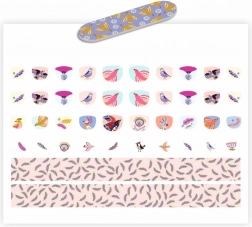 Vsebina kompleta: 30 nalepk za nohte, 10 manjših nalepk, 1 trak vzorcev za izrezovanje, 1 pilica za nohte.