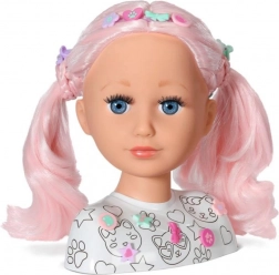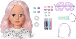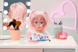 Odkrijte neskončne možnosti ustvarjanja z glavo za česanje BABY BORN višine 22 cm. Zahvaljujoč dolgim rožnatim lasem iz kakovostnega najlona, barvnim flomastrom, šabloni in setu snap okraskov bodo otroci uživali ure kreativne zabave – od česanja in ličenja do okraševanja majice in naglavnega traku.