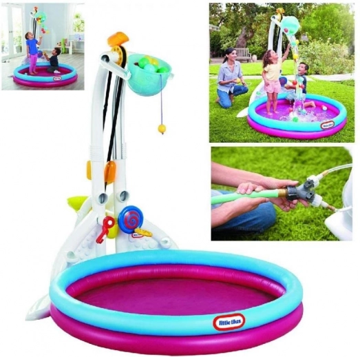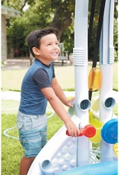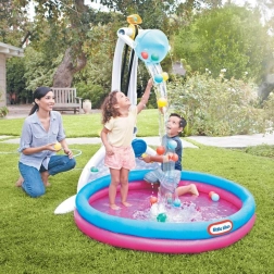 Odkrijte večfunkcijsko vodno središče, ki vsako dvorišče ali otroško sobo spremeni v prostor poln veselja. Otroci lahko uravnavajo pretok vode, napolnijo razpršilno posodo, sprožijo dvojni slap in opazujejo, kako se žogice kotalijo po vodnem/kroglastem transporterju v zgornje vedro. Napihljiva osnova povečuje varnost in udobje med igro.