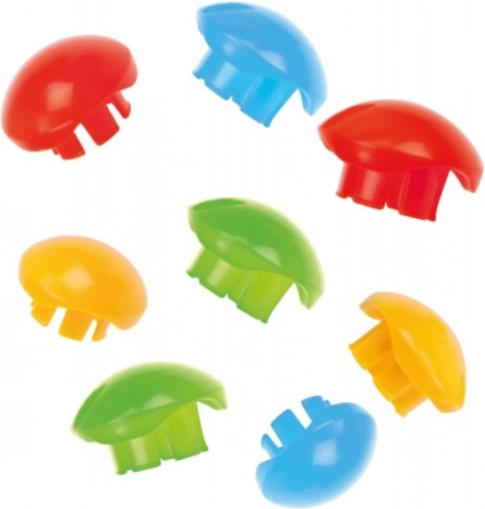 Gladki, robustni delci s premerom 3,2 cm so otrokom lahko oprijemljivi in se varno vstavijo v odprtine – idealno za prve mozaike.