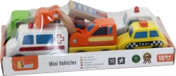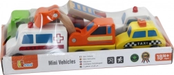Štiri reševalna in mestna vozila + delovni stroji v enem paketu spodbujajo tematsko igro in vsakodnevne zgodbe.