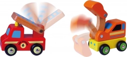Od gasilskega vozila do bagra – izrazite barve in lahko prepoznavne oblike spodbujajo domišljijo in učenje skozi igro.