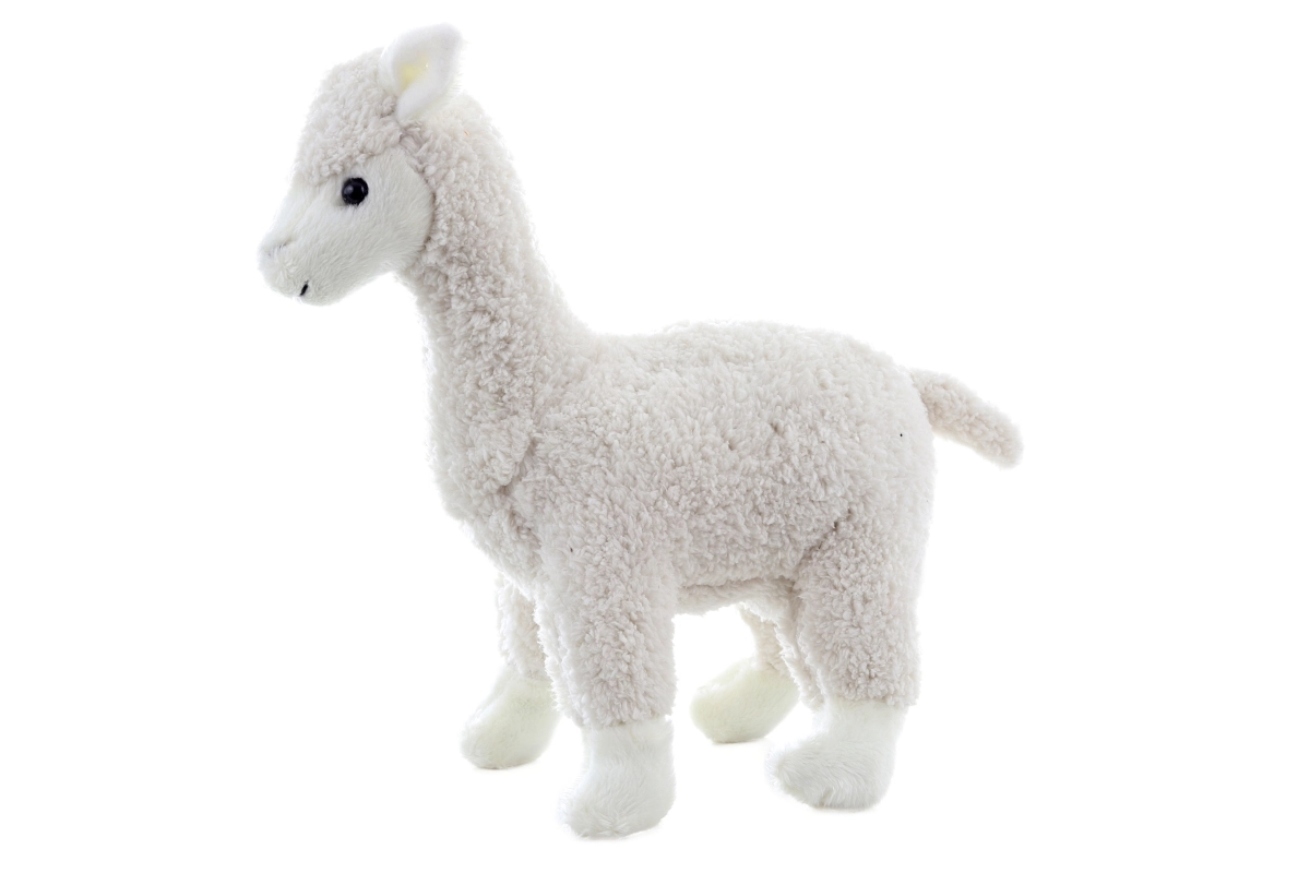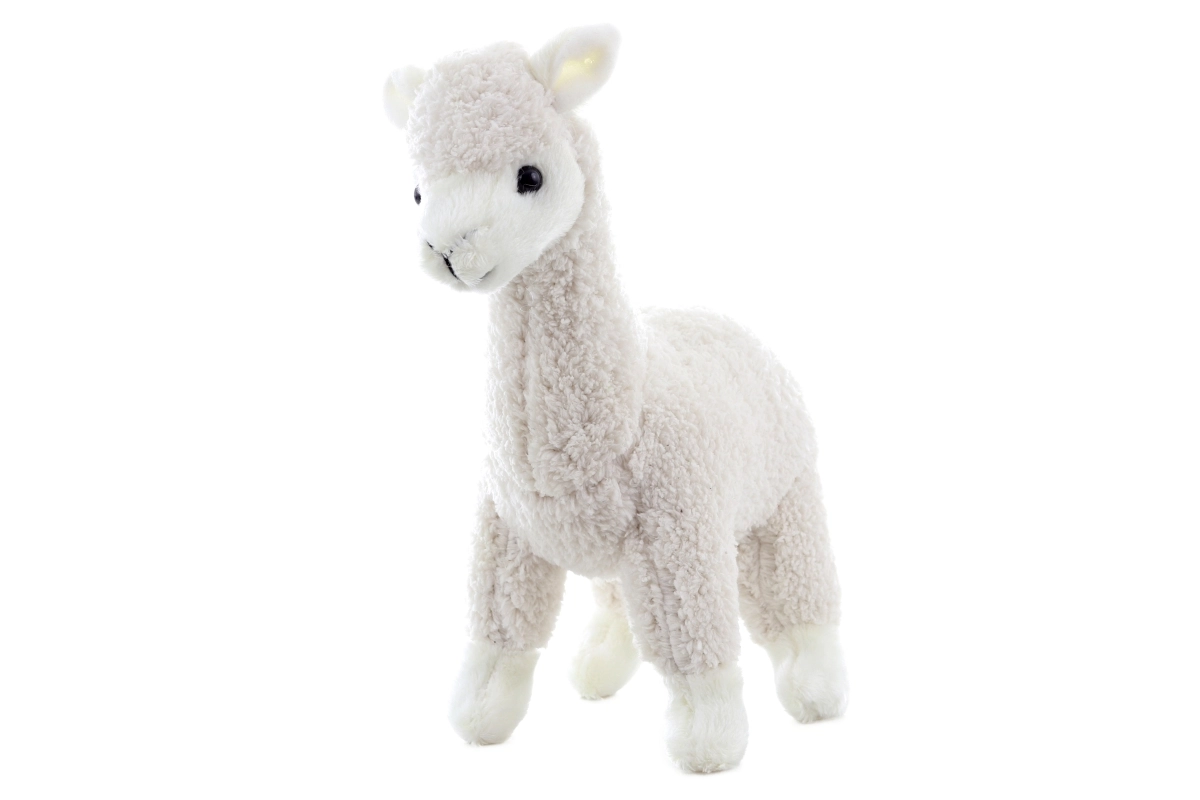 Plišasta igrača v obliki alpake iz mehkih in prijetnih materialov, idealna za majhne otroke in dojenčke.