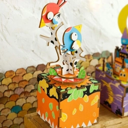 Uživajte v sestavi podrobnega barvnega modela para ptičkov na veji, ki bo po dokončanju vašo polico oživil s prijetnim zvokom in nežnim gibom. Kakovostni leseni deli z natančnim potiskom se natančno prilegajo in skupaj s kovinskimi elementi tvorijo stabilno mehansko glasbeno skrinjico.