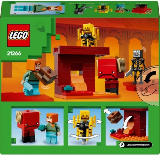 Odkrij svet MINECRAFT v živo s kompaktno sestavljanko LEGO Minecraft Bitka na mostu v Netherju. Dobiš figurice Alex, zamorjenega okostnjaka, plameniča in magmakocke s sedlom, gibljivimi nogami in akcijskimi funkcijami. Čaka te prava akcija v trdnjavi Nether, padajoča lava, zbiranje pradavnih ostankov in boj z mobe z legendarnim diamantnim mečem. Odlično darilo za otroke od 6 let.