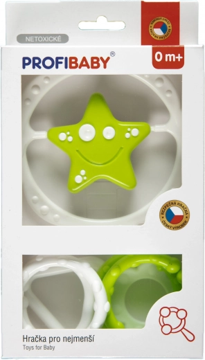 Ta komplet ropotuljic je idealen za vsakodnevno igro doma in na poti. Verigo preprosto pritrdite na voziček, avtosedež ali posteljico, samostojna ropotuljica v obliki zvezde ali cvetka pa odlično sede v majhno otroško ročico. Zvočni in vizualni dražljaji spodbujajo otrokove čute in podpirajo koordinacijo oko–roka.