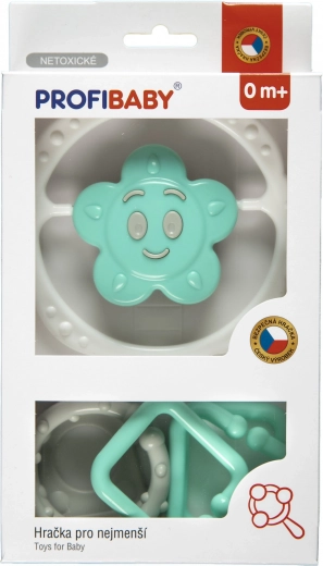 Praktičen komplet za najmlajše: ropotuljica–veriga za voziček ali posteljico ter samostojna ropotuljica v obliki zvezdice ali cvetka. Podpira razvoj sluha, vida in tipa, naravno uri prijemalni refleks in je zasnovan z poudarkom na varnosti – brez ostrih robov in brez snemljivih majhnih delov. Na voljo v različnih barvah in v 2 motivih.