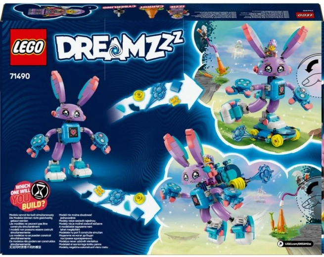 Doživite pustolovščine v svetu sanj s kompletom LEGO DREAMZzz Izzie in gamerski Bunchu. Otroci zgradijo novo različico zajčka Bunchuja z zaslonom na trebuhu, igralnimi rokavicami in supergami, nato pa izberejo enega od dveh načinov sestavljanja. Dva načina igre, zelo gibljiva figura in minifigura Izzie spodbujajo ustvarjalno igro in pripovedovanje zgodb.