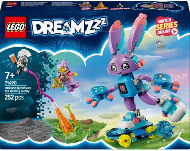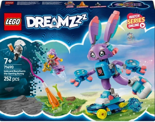Komplet LEGO DREAMZzz Izzie in gamerski Bunchu navdihuje otroke za ustvarjalno igro po priljubljeni seriji. Zgradite Bunchurra – novo, kul različico zajčka Bunchuja z zaslonom na trebuhu in igralnimi dodatki – ter se z Izzie podajte rešiti sanjčka Korenjavi pred kiboržem.