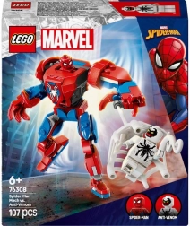 Ta LEGO komplet vsebuje dve minifigurici: Spider-Mana in Anti-Venoma z lovkami. Meh ima premične roke, noge in prste, njegov trup pa omogoča postavitev minifigurice Spider-Mana. Na voljo je tudi velika, prilagodljiva mreža, ki lahko ujame minifigurico Anti-Venoma. Mrežo je mogoče pritrditi tako na roko minifigurice kot tudi meha. Z uporabo intuitivne aplikacije LEGO Builder lahko otroci še bolj povečajo svojo zabavo z možnostjo povečanja in vrtenja modelov v 3D ter sledenja svojim gradbenim uspehom.