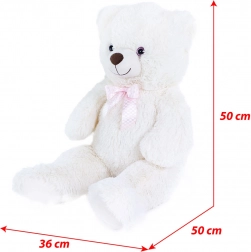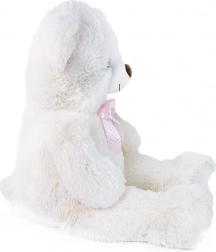 Plišasti medved Lily v kremno beli barvi je idealno darilo za vsako priložnost – ob rojstvu, rojstnih dnevih ali praznikih. Izdelan je iz kakovostne mehke pliši, ima prijazen izraz in rožnato satenasto pentljo, ki mu daje eleganten videz. Zaradi višine 78 cm je popolnoma cartljiv in topel.