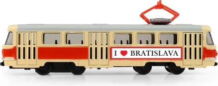 Odkrij čar legendarnega tramvaja T3 v kovinski izvedbi z avtentičnim tiskom I ♥ BRATISLAVA. Model navduši s precizno izdelavo, realističnimi detajli in funkcionalnim vzvratnim pogonom, zaradi katerega se po navijanju zapelje.