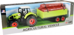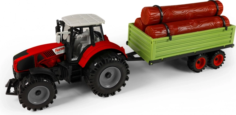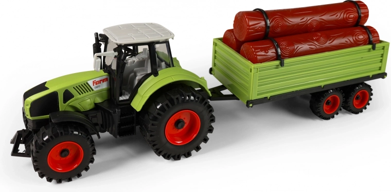 Odkrijte zabavo na kmetiji s podrobno izdelanim traktorjem s prikolico za les skupne dolžine približno 45 cm. Traktor vozi na vztrajnik za gladko gibanje, prikolica ima prosti tek in jo je mogoče preprosto odklopiti. Hlodove je mogoče zlahka odstraniti, kar spodbuja razvoj fine motorike in domišljije.