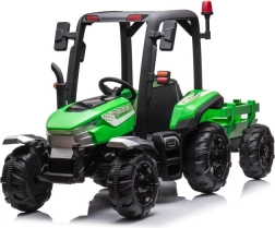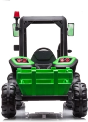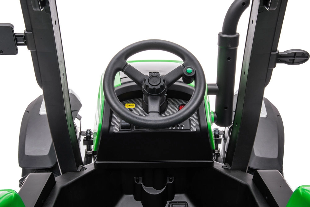 Ta akumulatorski traktor je zasnovan za otroke, ki radi odkrivajo svet traktorjev. Zelena in črna barvna kombinacija skupaj z vzdržljivimi kolesi zagotavlja dolgo življenjsko dobo in prilagajanje različnim terenom.