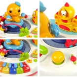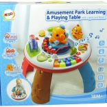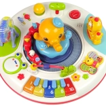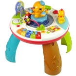 Mizica je opremljena s klaviaturo z melodijami, vrtljivimi figuricami in osvetljenimi gumbi v obliki živalic, ki ob pritisku oddajajo vesele zvoke in svetlobne učinke. Plastična mizica je zasnovana tako, da zlahka pritegne otrokovo pozornost.