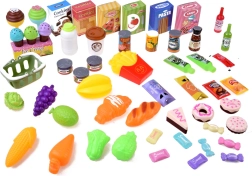 Vsebuje 71 kosov dodatkov, vključno s sadjem, zelenjavo, pekovskimi izdelki in celo realistično izdelanim denarjem, kar otrokom omogoča neomejeno igro.