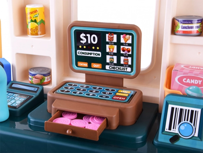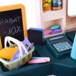 Set ponuja realistične elemente za napredno igro trgovine. Otroci lahko uporabljajo prenosni čitalnik kod in čakajo v vrsti kot v pravem supermarketu.