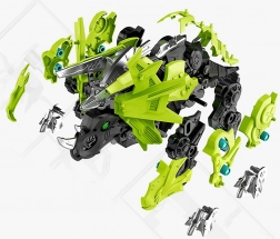 Sestavljanje je priporočeno za otroke od 8 let, kar zagotavlja, da zahtevnost ustreza njihovim sposobnostim. Kombinacija zelene in sive barve daje modelu futurističen videz.