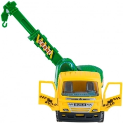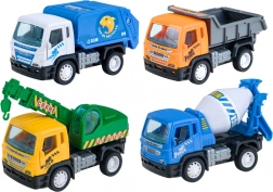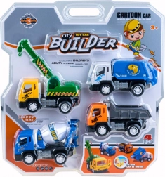 Komplet vključuje žerjav, tovornjak, smetarski tovornjak in mešalca, vsako s svojimi edinstvenimi podrobnostmi, ki spodbujajo ustvarjalno in interaktivno igro.