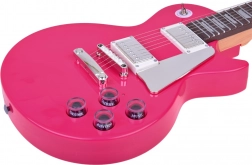 Ta otroška električna kitara v rožnati barvi je zasnovana tako, da spominja na pravi instrument in otrokom nudi avtentično izkušnjo igranja. Zahvaljujoč plastičnemu ohišju s kovinskimi strunami ter upravljalnim elementom bodo mali rockerji uživali v realističnih zvokih in enostavnem upravljanju.
