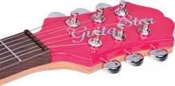 Glava z logotipom Guitar Star in kovinski uglaševalni mehanizmi zagotavljajo stabilno uglasitev ter spodbujajo otroke k rednemu igranju.