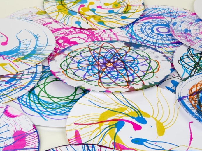 - 49 delov – vsebuje barvne flomastre, barve, vrtljivo platformo in šablone za spirograf.