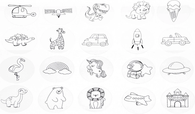- 20 kolesc s slikami: živali, dinozavri, vozila, astronomski objekti, pisani motivi