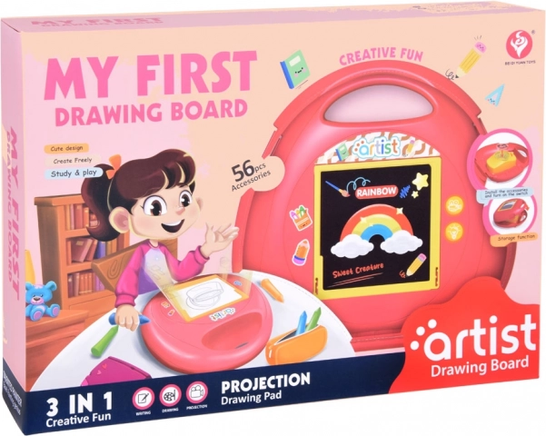 3-v-1 projektor za risanje s kovčkom. Vsebuje 20 vzorcev, spodbuja ustvarjalnost in je enostaven za prenašanje.