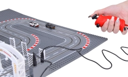 Doživite napete boje kolo na kolo na lastni progi. Proga iz kock se preprosto sestavi, je stabilna in zahvaljujoč USB napajanju ni skrbi z baterijami. Dovolj je priključiti upravljalnika na krmilno postajo in dirka se lahko začne – kdo bo prvi prečkal START/CILJ?