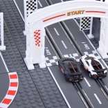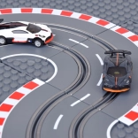 Priložena avtomobilčka z dirkaškim dizajnom sta idealna za dvoboje v paru. Lahka, hitra in odlično držita smer v progi za tekoč prehod skozi ovinke.