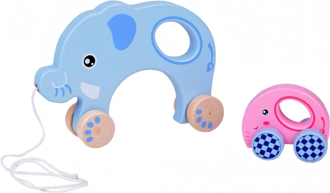Prisrčen leseni vlečni slon z manjšim slončkom podpira prve korake in razvoj motorike. Zahvaljujoč praktični odprtini za prijem in vrvici za vlečenje je idealen za majhne otroške ročice. Varna lesena izvedba, pastelne barve in kolesca za gladko vožnjo zagotavljajo ure vesele igre.
