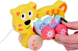 Igrača je izdelana iz trpežnega lesa v pastelnih barvah, ki pritegnejo, a ne motijo. Odlično se poda kot darilo za malčke – prinaša zabavo, podpira ravnotežje, koordinacijo oko–roka in uči vlečenja ter vodenja igrače v pravo smer.