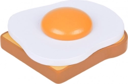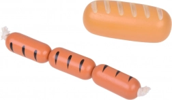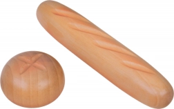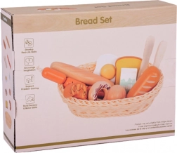 Bageta, žemlja, toast, rogljiček, krofi, klobasice, jajce in mleko – verne oblike in barve vabijo k igri kuhanja ali trgovinice.