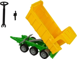 Prikolnik ima odpirajoče se zadnje steno in prekucni mehanizem za preprosto iztresanje tovora. Otroci se lahko vozijo samo s traktorjem ali priklopijo prikolnik in prevažajo material kot na pravi kmetiji – idealno za razvoj fine motorike, domišljije in igre vlog.
