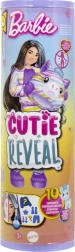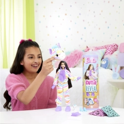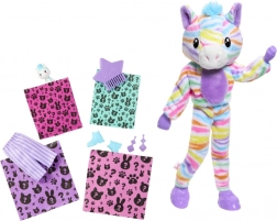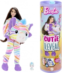 Punčka BARBIE Cutie Reveal iz serije »Sladke sanje« prinaša kombinacijo mehkega plišastega kostuma in modne igre. Barviti preoblečni kostum zebre spremenite v trendovska oblačila – vključno z dvostransko jakno s cvetličnim potiskom in učinkom mavrične zebrine kože. V pakiranju vas čakajo tudi čevlji, kratke hlače in nakit za neskončno mešanje slogov.