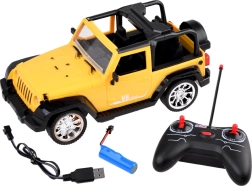 To zabavno terensko vozilo na daljinsko upravljanje izstopa z odprto off-road karoserijo, realističnimi detajli in stabilno vožnjo. Zahvaljujoč zadnjemu pogonu in možnosti nastavitve stekanja koles se zlahka upravlja in drži smer, medtem ko sprednje luči med vožnjo osvetljujejo pot.