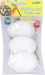 Ta ustvarjalni set je idealen za otroke in odrasle, ki radi ustvarjajo in želijo izdelati svoje velikonočne okraske. Plastična jajčka so lahka, trpežna in pripravljena za dekoriranje s priloženimi barvami.