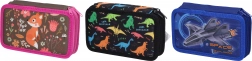 V notranjosti peresnika boste našli elastične gumijaste zanke, ki varno držijo svinčnike, barvice in pero na svojem mestu. Priložena je osnovna zbirka pisal, zato lahko peresnik začnete uporabljati takoj po odprtju. Kompaktne mere 19,5 × 12 cm se udobno prilegajo vsaki šolski torbi.